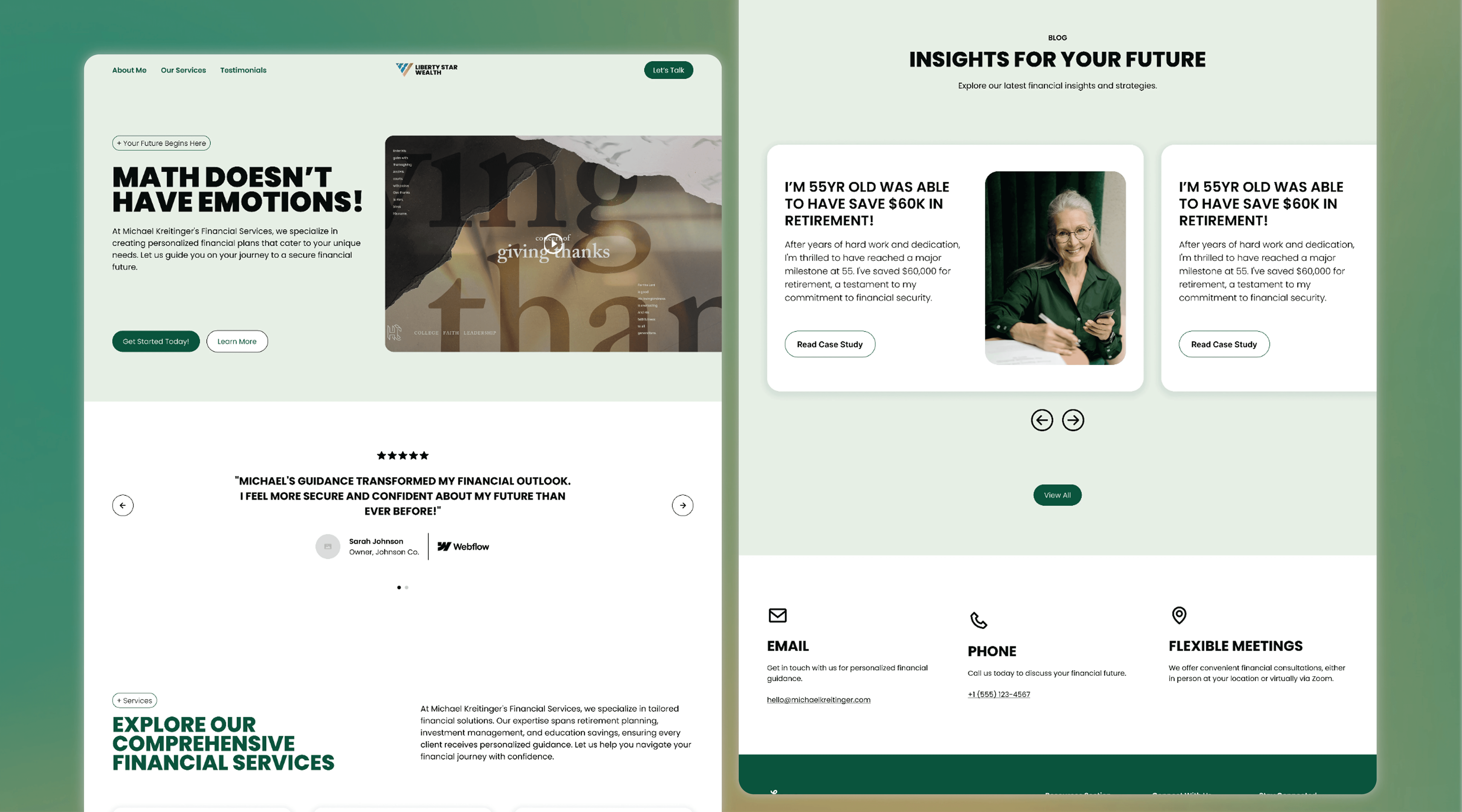 Great work generates its own leads. Following the launch of JaySmiley Films, I was directly referred to Liberty Star Wealth—a new financial startup focused on retirement planning. They needed to establish immediate digital authority and trust, but they were operating on a strict four-to-six-week launch timeline. I architected and developed a clean, professional web presence from scratch, delivering a fully functional site on deadline so their team could hit the market running.